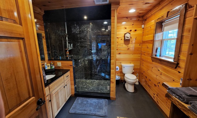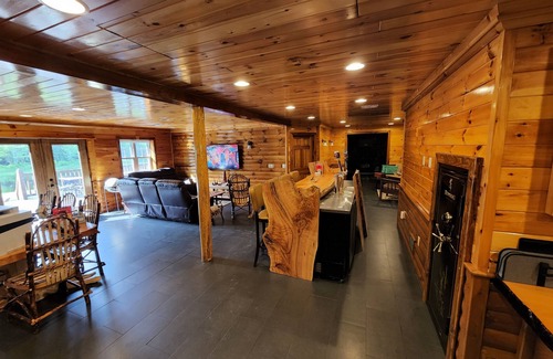 The Maine River Lodge is located on the serene Mattawamkeag River in Southern Aroostook. This lodge is a dream. Nestled in a charming natural setting, this peaceful retreat offers a cool escape for guests seeking tranquility and nature. With 5 spacious bedrooms, including 4 queen beds, 2 twin beds, 5 full beds and a Leather futon, everyone will find their perfect spot to unwind. The lodge features 3 bathrooms equipped with amenities like hair dryers and marble showers. Whether you're exploring the abundant wilderness and nature, canoeing, kayaking swimming or tubing on the river or simply relaxing by the outdoor fire pit, we hope you enjoy what our place has to offer.