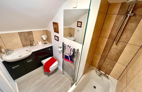 Outside you have your own garden front and back with benches and swing seat. The large wooden decking with seating for 8 and the gorgeous heated cabin where you can relax. Then through a gate, an acre of wooded grounds, there are streams, waterfalls, and a camp fire, all for you to explore. This area is fenced off so perfectly safe for children. There is virtually no road noise as the cottage is at the end of a dead end lane, only the sounds of nature! There is parking for several cars and a barn to store bikes can be made available on request. (advise in advance for key). A garden table, chairs and umbrella make the perfect place to enjoy a BBQ of some of the fantastic local fair. Perfect for children and the nature lovers. We can organise a HOT TUB provider to bring in a tub for an extra cost, please ask about hiring.