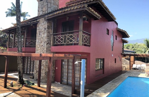 House with 5 suites, all with air conditioning and fans, total of 7 bathrooms, two kitchens, two living rooms, Wi-Fi, barbecue, wood oven, swimming pool, volleyball court and pool table, very nice house use , both day and night, is well located in a great neighborhood, near the beach, about 300 meters from the entrance 9, where are located the best hotels in Maresias, near bars, restaurants, nightclubs, etc .. Maresias is well known for its natural beauty and clean water, and also for being the favorite stronghold of great surfers, but not all the time the sea is for surfing, in most days the sea is calm and low. curling, and walking along the seashore in maresias is very gratifying for the beautiful natural senary. .