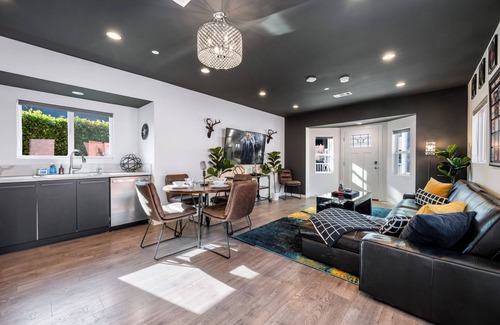 Find your peaceful retreat amidst the hustle and bustle of Hollywood with Urban Jungle, a bungalow that brings lush, modern decor to life in the heart of the city. The serene atmosphere, paired with state-of-the-art amenities like Smart TVs, fine linens, and a full kitchen, ensures you'll feel right at home. Guests enjoy private access to the bungalow and shared access to a gated patio for a touch of tranquility. Just steps from the Walk of Fame and Hollywood's top attractions, this space provides the perfect balance of convenience and relaxation.