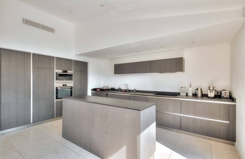 Contemporary 5-room villa located in a haven of peace surrounded by olive and palm trees with a large swimming pool of 40 m2 on a plot of 1000 m2 without any opposite, South West exposure. To take full advantage of the outdoors, you benefit from an outdoor kitchen with fridge, and a large barbecue. You will also take advantage of the sunshine all day long, magnificent sunsets and the intense white LED lighting of the entire swimming pool for swimming in the evening. For more security, you have the possibility of putting the protective barrier all around the swimming pool for small children. You have at your disposal outside a shower and a WC. Inside, the villa has a large living room opening onto an American kitchen, individually adjustable air conditioning in each room (essential in summer in our region), a bathroom, a walk-in shower, 3 bedrooms ( 4K LCD and full HD TV, DVD player, Apple TV, Netflix, German channels), a games room with sofa bed (4K LCD TV 101 cm, Apple TV, Netflix, blu-ray player), a living room with LCD home cinema 4K 140 cm and blu-ray player (Apple TV, Netflix, freebox revolution (foreign channels). For the activities of children and parents, you also have a ping pong table, a basketball hoop, a number of new bikes (ATVs) to stroll around the area around its 3 lakes and in the natural park of vaugrenier with an area of 21 hectares bordering on the domain. You have at your disposal WIFI in all rooms, XBOX and WII. You will be located in the Hauts de Vaugrenier domain, secure with a guard post at the entrance and inside the domain with 24 hour guards who make rounds day and night. The villa is also fully secure and fenced with a code. You can also benefit from the activities of the domain: Olympic swimming pool, 8 tennis courts, restaurant of the domain which delivers you at home, 3 lakes, a playground for children, a basketball court, a small soccer field, a game of ball, and a sports course. The estate also includes a grocery store, an esthetician, a hairdresser, a doctor and a pharmacy. You are 1 kilometer from the beaches and shops. You are close to Biot Marineland and Aquasplash (5 km). By car, you are 10 minutes from the beaches of Cap Antibes and Juan les Pins and 15 minutes from Nice Airport.