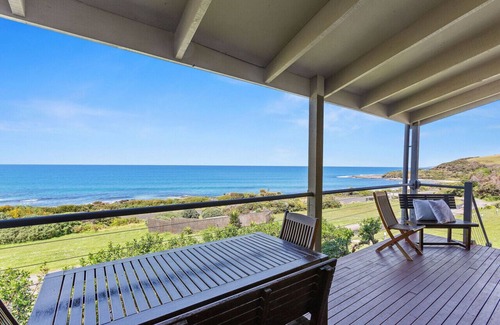 Luxury 3 bedroom apartment, with two living areas and two bathrooms. Ideal for family holidays. Spacious, fully self-contained ground floor level apartment with gorgeous ocean views, private deck with gas BBQ and outdoor dining. This apartment comes with fully equipped kitchen with hot plates, oven, microwave, large refrigerator and dishwasher. Featuring 2 Queen beds, 2 king singles and fold out sofa bed, capacity of 8. Linen and Towels provided.