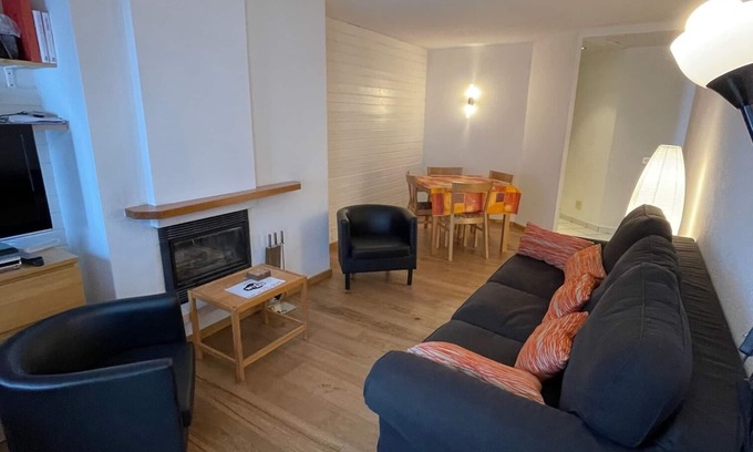 Nice apartment (max 5-6 persons) with entrance hall, 1 bedroom with 1 double bed and 2 bunk beds (bedding: Nordic duvets. Sheets and towels not provided), 1 bathroom / WC-shower. Living room composed of a dining area, a fireplace, a sofa that can serve as a bed for 2 people and TV, DVD. The kitchen is equipped with a traditional microwave-oven, vitroceram plates, oven, fridge and a dishwasher. Near the gondola.