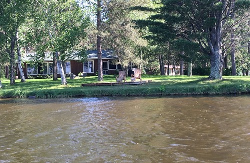 Our cherished lake home is located on a point on Chief Lake, former residence of the World Record Musky (now residing on a wall at the Moccasin Bar 17 miles away in Hayward, Wisconsin). The home has a beautiful wood floor and cedar paneling throughout the main living area. It has three bedrooms for adults and a large cedar paneled "bunk room" with four single beds on the far end. Kids can play loud without disturbing their parents on the other end.
