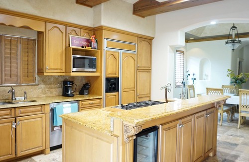 This luxury home boasts exceptional amenities that cater to all your wedding needs. Newly renovated in 2024, it features high-end furnishings, two fully equipped kitchens, multiple entertaining areas, and a gorgeous private pool surrounded by patios. You'll find spaces designated for every part of your wedding journey—from intimate ceremonies to lively receptions. Each of the four bedrooms is thoughtfully designed with comfort in mind, ensuring your guests feel pampered throughout their stay. For those coordinating corporate events or workshops, the property also comes equipped with state-of-the-art AV equipment, making it an ideal multifunctional space.