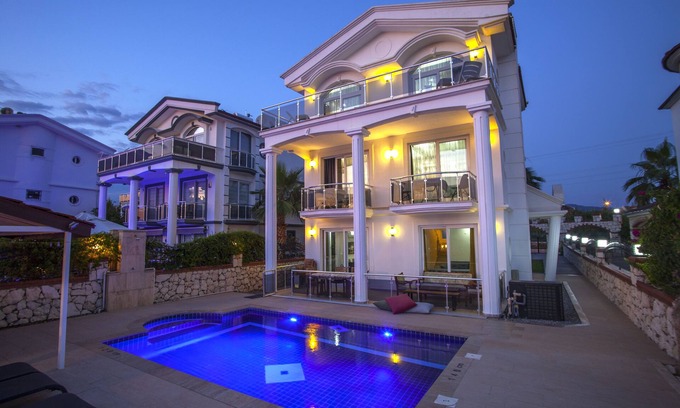 Best-rates for the Fethiye City Center villa starts from $466 per night with includes View, Fireplace/Heating, Child Friendly, Laundry, Private Pool, Ocean View, Bedding/Linens, Entertainment, Internet, Kitchen, Sports/Activities, Wellness Facilities, Barbecue/Outdoor Cooking, Air Conditioner, Parking, Pool, Designated Smoking Area, TV, Balcony/Terrace, Oceanfront with all other amenities. Perfect for Weddings is committed to ensuring every guest experiences a comfortable and extraordinary stay, whether planning a romantic getaway, a honeymoon, a pet-friendly stay, or celebrating with the entire wedding party.