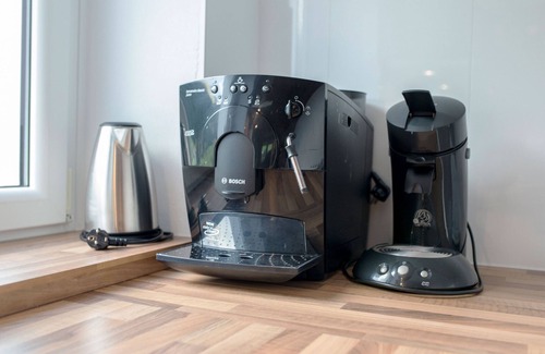 The apartment has two cosy bedrooms with a total of 4 beds - including a double bed, two single beds and a double sofa bed in the communal area. The kitchen is fully equipped with a glass ceramic hob, refrigerator, freezer, coffee machine espresso groß (Bosch), oven, dishwasher, microwave and all necessary kitchen utensils.
