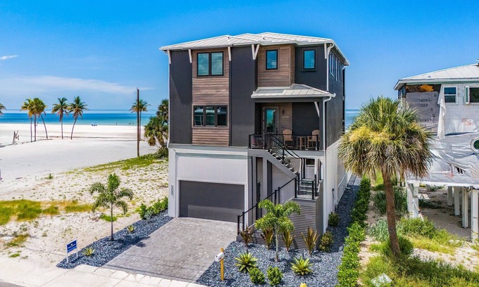Welcome to Chasing Sunshine, a brand-new beachfront retreat located on Fort Myers Beach. This stunning five-bedroom, four-and-a-half-bathroom home offers the perfect blend of modern comfort and coastal charm, with direct beach access right from your backyard. Just beyond your private heated pool and hot tub lies the soft, white sand of the Gulf of Mexico, making this one of the most sought-after locations on the island.