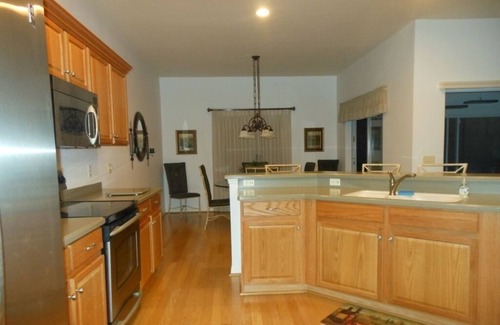Our home has 2 bdrms the master has a king ized bed and there are two twin beds in the second bdr. There is a comfortable sleep sofa on the 4 season lanai and a futon in our "flex room". 2 full baths. The lanai has sliding windows, A/C and heat for yr round comfort. 2 55' flat screen TVs (1 in living rm and 1 in lanai) with a third TV in the master bdrm. Gas grill on patio. Use of our upgraded golf cart. All the comforts of home.