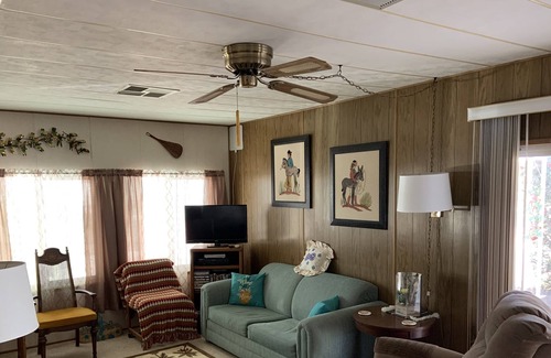 Never a dull moment! Our community clubhouse hosts games, dances, and/or exercise options nearly every day. The heated pool and hot tub is a great way to relax and enjoy some of the best sunsets in the country. BBQ on the covered patio and pick oranges off the tree in your own yard. Two golf courses are within 3 minutes of the property. Plenty of desert trails close by for 4 wheeling or hiking. Float the Colorado River or Fishing less than 10 miles away. Enjoy plenty of dining and shopping options unique to Yuma as well as many national chains. 800 square feet total includes 2 Bedrooms, 2 Bathrooms, Dining Area, Living Room & cook ready Kitchen.
