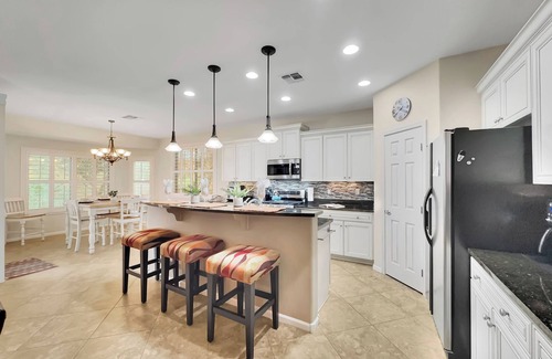 The fully equipped kitchen features modern appliances, including a refrigerator, dishwasher, and coffee maker, making meal preparation a breeze. Dine indoors or take advantage of the outdoor dining area for al fresco meals in the beautiful Arizona weather. For entertainment, the home is equipped with a Smart TV, high-speed Wi-Fi, and a selection of board games.