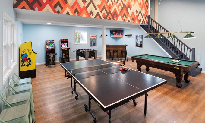 We've stocked it with videogames, board games, pool table, darts, 2 HDTVs, ping pong, arcade games, brand new kitchen appliances, lots of seating areas, you might never leave the house!