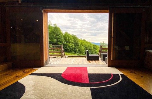Great entertaining space guarantees memorable moments: 2500sqft open living space, includes open kitchen, bar -, dining -, tatami -, sofa and TV areas, two large fire places, stone pizza oven (not for use in mid summer), large windows, and ceilings up to 40ft!4 bedrooms, 2 lofts, 3 bathrooms with showers and 2 Japanese tubs. 2.5 hours from New York (GW bridge). Winter: 4WD/AWD required for last 0.7miles.