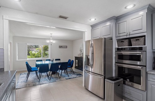 Situated just 20 minutes from Clearwater Beach and the vibrant attractions of St. Petersburg - Clearwater, the location of this stunning house provides easy access to nearby points of interest, including the breathtaking St. Pete Pier and the iconic Skyway Bridge. Conveniently located within a short drive from both TPA and PIE airports, all your guests can enjoy hassle-free travel, allowing everyone to focus on celebrating your special day. Set in a welcoming neighborhood near Pinellas Park, this property is the perfect haven for your wedding celebration and everything related to it.