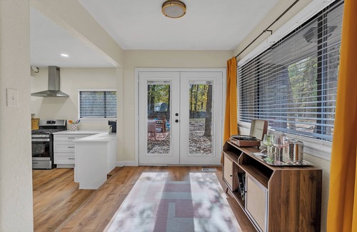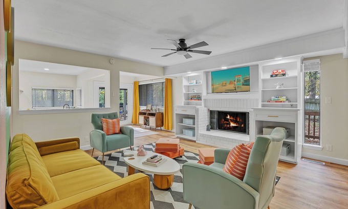 Step into a Wes Anderson-inspired haven with charming, brand-new decor and delightful surprises at every turn. This 5-bedroom, 3-bathroom Tulsa retreat is the perfect getaway for relaxation and fun. Unwind in the cozy movie theater, challenge friends to arcade games, or savor alfresco dining by the fire pit. With plenty of space, unique style, and inviting amenities, this home is your ideal base for exploration and making memories. We can’t wait to welcome you!