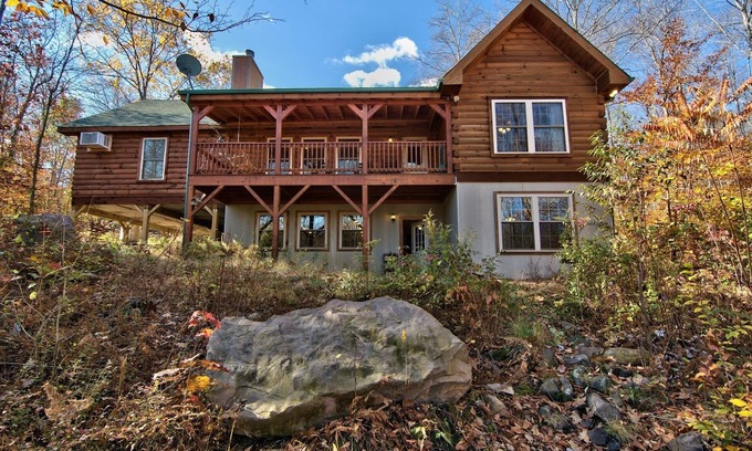 - Log Cabin 2 acre borders Lehigh River & Trail- Gameroom, 2 Bars, Fire Pit, decks