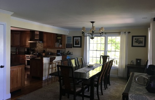 The wade-in beach is perfect for young and old, there is great fishing off the boat dock, and nothing beats a family barbecue in the new outdoor kitchen and dining space, sunbathing, or star gazing atop the boathouse. We have a private swimming raft off our dock. Enjoy using our paddleboat, adult kayak, or 4 children's kayaks! There are three golf courses only minutes away or stay at home and sit on one of the rockers on the 51' porch and just enjoy the view.