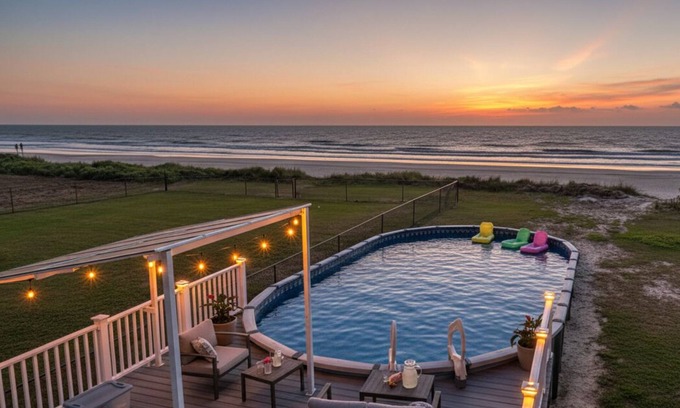 Best-rates for the Port Bolivar house starts from $522 per night with includes Balcony/Terrace, Oceanfront, Fireplace/Heating, Entertainment, Barbecue/Outdoor Cooking, Hot Tub, Pet Friendly, Security/Safety, Kitchen, Parking, Ocean View, Wellness Facilities, Child Friendly, Internet, View, Sports/Activities, Bedding/Linens, Laundry, Air Conditioner, TV with all other amenities. Perfect for Weddings is committed to ensuring every guest experiences a comfortable and extraordinary stay, whether planning a romantic getaway, a honeymoon, a pet-friendly stay, or celebrating with the entire wedding party.