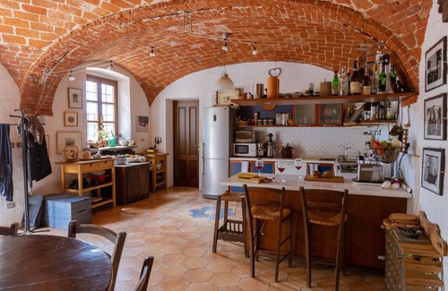 As far as "enogastronomic" touring, wine country hiking and road cycling destinations go, this area cannot be beat. As a base from which to explore the area, I have a restored but still rustic country home on a hilltop surrounded by vineyards of the Langhe Roero and Asti areas, with views to the alps. Ideal for families and groups up to 12 people. Five bedrooms, 3 1/2 baths, large family room / kitchen with fireplace. Outdoor cooking, dining and entertaining areas with barbecue and pizza oven, swimming pool, hot tub, sauna, fruit trees, herb garden, 4 car carport, solar panels. A real home, not a hotel-style rental property. Short drive to Alba, Barolo, Barbaresco, Canale, Asti and less than 1 hr from Torino. When not rented this remains my home, so care and respect are necessary ingredients. Additional pictures available on request.