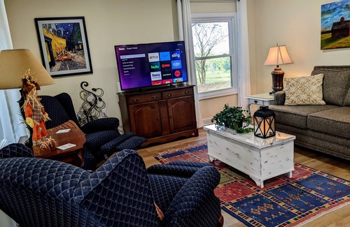 After having a great night's sleep due to our blackout curtains and soft sheets, wake up to coffee in the sunroom as you look for wild turkey or deer. Observe us picking crops or driving tractors in the fields. Play the piano or relax outside by the firepit. Go hiking. Gaze at the night sky perfect for star gazing or the fireflies. Read one of our supplied books or play cornhole or board games