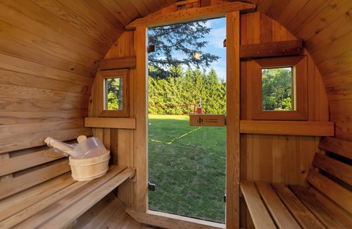 - Luxury Pocono Retreat with hot tub, sauna, fire pit, and patio