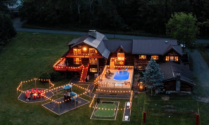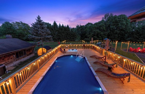5BR Lux Log Mansion w Legendary Amenities & Pool! | Cabin in East Stroudsburg