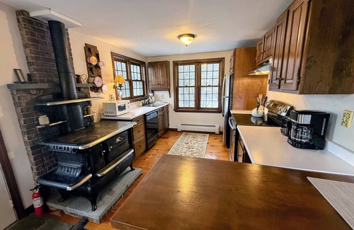 Perched on a picturesque hilltop in Whitefield, this charming farmhouse exudes warmth, rustic character, and modern comfort. With beautiful gardens and a peaceful pond as a backdrop, you will enjoy breathtaking views, including Cannon Mountain's ski slopes, while embracing the serenity of the White Mountains. In addition, the home is just 3 minutes from the fabulous Mountain View Grand Resort, where our guests can enjoy pool and gym access, an amazing spa, and discounts for the stunning golf course (subject to availability and fees).