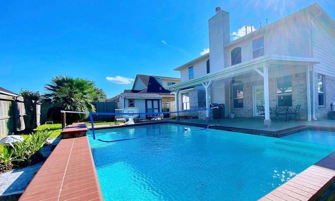 This beautiful property has everything you need for your stay including a big swimming pool, pool table, covered porch, BBQ grill and new Furnitures! Only 3 miles to Kemah boardwalk, 6 miles to Nasa Space Center, short distance to restaurants and seafood market. Come and enjoy everything that Seabrook / Kemah has to offer!