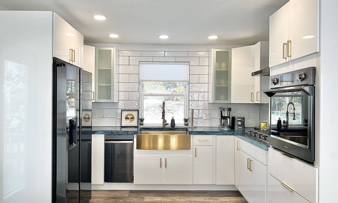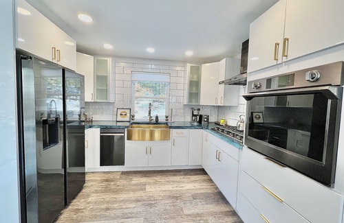 -Chef’s kitchen with SAMSUNG appliances and state of the art gold brass sink that we are absolutely in LOVE with.