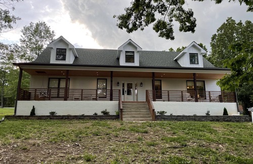 Enjoy the beautiful scenery and a little bit of Tennessee's county! A beautiful 4500 square foot home that features 2 gorgeous porches to sit and enjoy the sunrise and sunset while the kids watch a movie in the theater. You'll be minutes from the lake, state park, or shopping, and only 20 minutes from downtown Nashville and airport. With 14 separate beds and 2 cribs you won't find a better place to bring your family and friends.