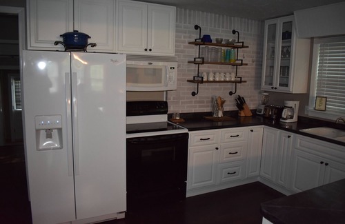 This recently remodeled two story farmhouse is a beautiful country home. It is spacious yet cozy and warm. It's size allows large families or groups to spend time together and be comfortable. Your group can prepare a meal in the full size kitchen and sit down to enjoy it together at the large dining table. The covered porch is great for sitting. The deck has a fireplace that is sure to draw everyone for a relaxing evening. The house sits on 12 acres and has a large yard with plenty of shade provided by mature trees. There are numerous plants and flowers throughout the yard including a sea of yellow and white when the daffodils are in bloom. It really is a beautiful sight. You can enjoy the porch swing inside the gazebo while overlooking the pond through the trees. The pond is off limits to fishing or swimming. You can watch the deer, birds and squirrels as they go about their day. This property is a wonderful place to slow down and spend time with friends and loved ones.