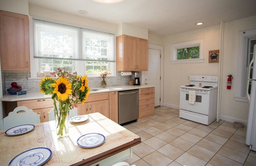 Inside you'll find a 3 story, classic 1920s home with tasteful updates, large living room, and gleaming hardwood floors throughout. All of the conveniences of home, including fully stocked kitchen, dishwasher, washer/dryer, iron/ironing board, wifi, and cable. 6 Bedrooms, sleeping for 12 with 4 queen beds and 2 full beds. First floor bedroom as well for those with mobility issues. Outside you'll find a spacious front yard for lawn games, and brick patio in the backyard equipped with gas grill and patio table for al fresco dining. Ready for you to move right in for the summer!