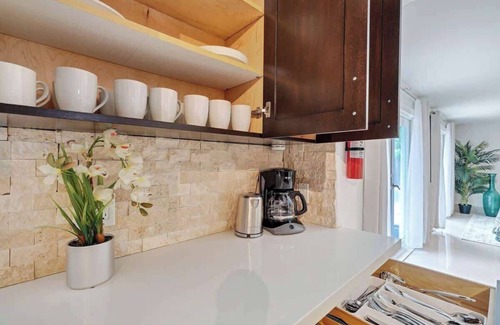 Modern appliances and spacious countertops in the fully equipped kitchen provide the tools you need to craft delectable meals. This kitchen is more than just a space to cook; it's a stage for culinary artistry and shared moments of delicious indulgence.