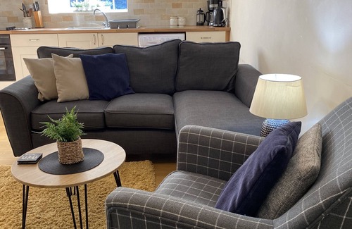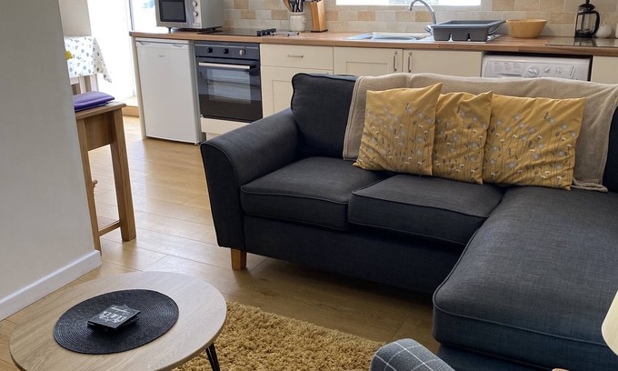 One of six converted barn cottages, number 6 includes a small living/dining area with a TV, DVD player, and a selection of games, toys, books, and DVDs.