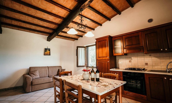 The two apartments have been made with care by the owner, who maintaining the atmosphere of the typical Tuscan country house with exposed and vaulted interiors, handmade brick arches, made them elegant and very comfortable.