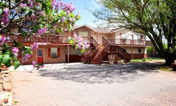 This fully-equipped apartment features two cozy bedrooms with queen-sized beds, making it ideal for both couples and small bridal parties. The large kitchen is perfect for preparing meals, while the inviting living room provides ample space for relaxation and gatherings. Step outside onto the expansive deck to enjoy views of Velvet Ridge Mesa, or unwind in the spacious 3/4 acre backyard, which is ideal for outdoor ceremonies or receptions. Convenience is key, with excellent internet and laundry facilities available to ensure your stay is comfortable and stress-free.