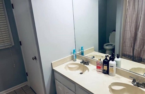We ask that our guests park in our driveway. There is ample driveway space for up to 6 normal-sized cars. Additionally, there are 2 parking spaces adjacent to the main road and in front of the house (one on either side of the driveway).