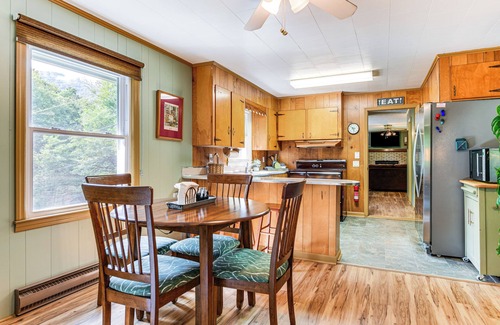 Complete with sprawling mountain views, a babbling creek, and a wood-burning fire pit, this 2-bed, 2-bath vacation rental hosts all the hallmarks of a classic Maggie Valley escape. Inside, this cottage features a well-equipped kitchen, a cozy fireplace, and a spacious sunroom; all of the essentials for an extended stay. Plus, enjoy easy access to top attractions like Soco Falls!