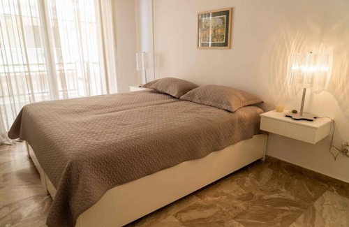 This luxurious and fully renovated apartment is located in the heart of the beach of N. Plagia, on the 1st floor of a building, located in the center of the coastal road.