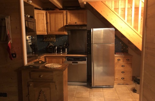 fitted kitchen with fridge, freezer, induction hob, oven, microwave, dishwasher, coffee machine, raclette, vacuum cleaner