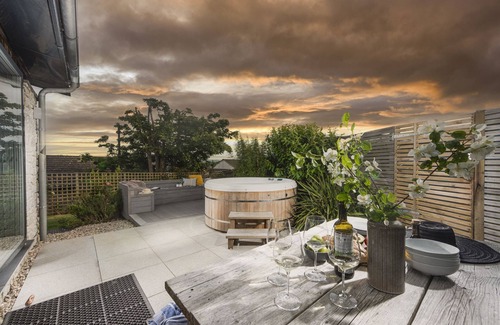 Tucked away behind dunes on the edge of Upton Towans Nature Reserve, you’ll discover 6 The Dunes; one of ten luxury eco-home that blend in beautifully with their natural surroundings. Easy on the eye and on the environment, these properties utilise sustainable, and where possible locally-sourced materials such as timber framing and bee bricks, with air source heat pumps, underfloor heating and high levels of insulation reducing their carbon footprints. Stepping inside, the cool, light-filled space has a minimalist and airy atmosphere, with modern bohemian textiles and one-off pieces of furniture infusing personality and playfulness into the home. Open plan living and spacious bedrooms offer ample room for four, with sliding doors from the living room out to the terrace, inviting the outdoors in. Days are spent surfing the Atlantic swell or exploring rock pools and caves with the kids before heading home to de-sand in one of the property's two beautiful bathrooms. Evenings are whiled away on the private terrace with drinks and conversation flowing, before the barbecue is lit and the hot tub eased into for a pre-supper soak.