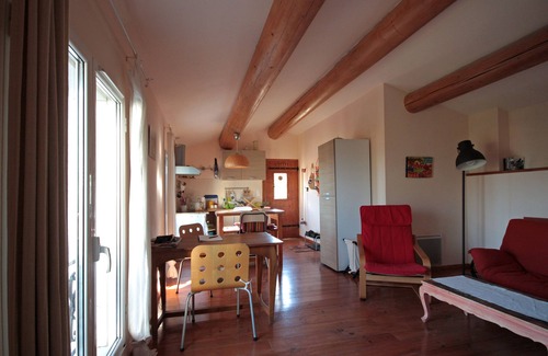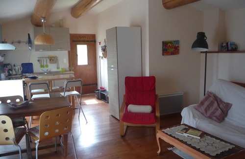 The penthouse suite on the second floor with its two bedrooms and its huge living room, dining room, kitchen, and bathroom, is suitable for 4 to 7 people. She has a Provencal "sitting dog" with an unobstructed view overlooking the old town.
