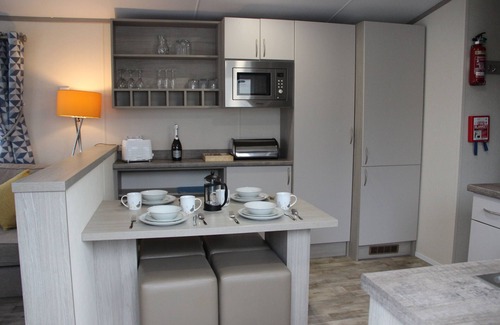 The site has an arcade, clubhouse, large indoor heated pool, laundrette, skatepark and 2 outdoor activity parks for various ages. It is a peaceful quiet site , situated 4 miles from beautiful beaches. Local pub and shop close by, WIFI available at the clubhouse and in the van with log in details.