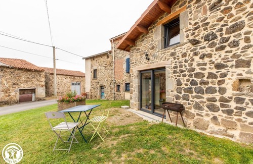 You will be seduced by this small house, entirely renovated by the owner, who is passionate about old stones. A charming and cozy interior with all the comforts for a holiday for two. At the heart of the Livradois-Forez Natural Park, you will discover the magnificent landscapes during hikes in the heart of nature. The pretty surrounding villages will seduce you with their buildings. Entering the gîte, on the ground floor, you will find the living room with fitted kitchen, dining area and lounge area. On the first floor, bedroom with shower room and toilet: the space is open, without partition, the toilets are isolated by a screen: bed 140, large shower. To take advantage of the light, a space on the ground floor has been created. No washing machine. Internet television. Electric heating included. For a peaceful holiday, bed linen and towels are provided with beds made on arrival. In front of the cottage you can enjoy an unfenced communal land (not used by other residents of the locality). The owner sets up a table, chairs and a barbecue. Shops and services in Vic-le-Comte 11 km.