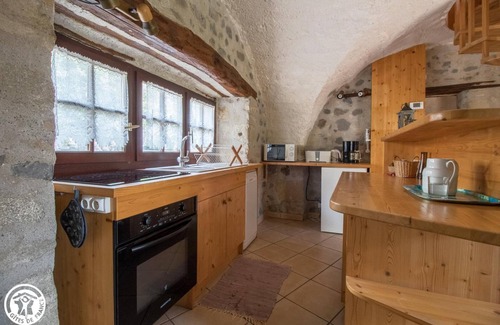 Nearby: Romanesque church Issoire. Classified special villages: Montpeyroux, Saint-Saturnin (church and castle), scenery de la Compté. Renovated wine-grower's cottage, semi detached with an unused barn. Gite:on the ground and 1st floors. Living room/kitchen area. Bedroom (2 beds90 adjustable into double bed, cot). Showerroom. toilets. Garden not enclosed. Terrace. Central heating gas extra. Gite near the cottage 6394, also owned by Mr. Schell. Shops and services : Vic-le-Comte 4 km.
