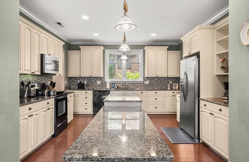 Get your favorite ingredients from the market, set them up on spacious countertops, and use numerous stainless-steel cooking appliances to make tasty dinners for the whole family to enjoy together.