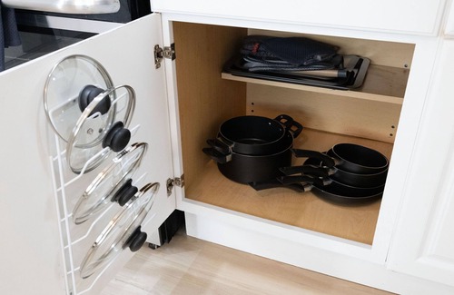 - Fully equipped kitchen with pots/pans, toaster, microwave, oven, coffee machine, coffee, kitchen knives, bakeware, dinnerware, coffee mugs, wine glasses, cooking utensils, kettle, tea, basic condiments, and more!