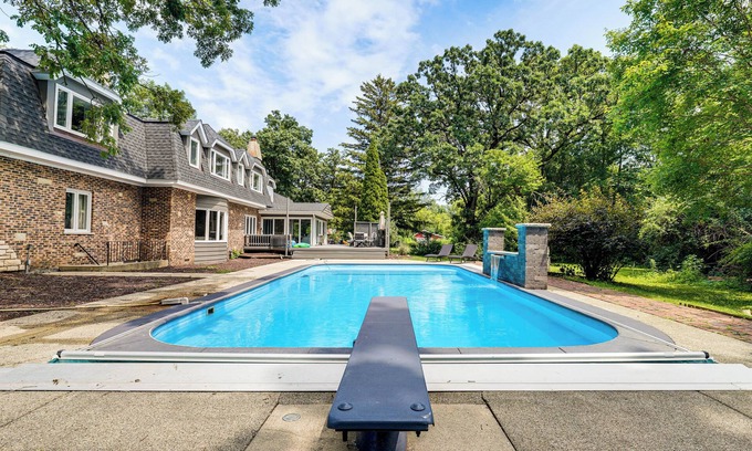 Luxury living awaits at this Wayne vacation rental! With a beautiful wooded setting complete with a koi pond, furnished deck, and private pool, this expansive 5-bedroom, 5-bath house has something for the entire family. Explore nearby trails, tee off at a local golf course, or check out upscale dining options in St. Charles! Then, return home to unwind on the screened gazebo while the kids enjoy the backyard playset.