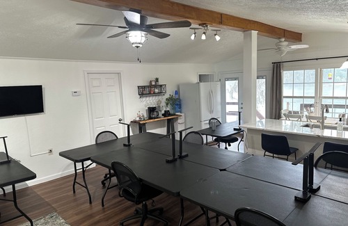 ☀️ Welcome to your perfect group getaway! This 7-bed, pet-friendly lakeside cottage is designed for families, friends, and retreat groups who want plenty of space without breaking the budget. Whether you’re planning a scrapbooking weekend, a family reunion, or a church retreat, you’ll love how affordable it is to spread out here — often less than $25 per person, per night. With a full kitchen, cozy gathering spaces, and beautiful spring-fed lake access right outside your back door, our home makes it easy to relax, recharge, and make memories together.