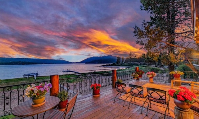 4 Story 6,000 SQFT Exquisite Log Cabin on the North Shore of Big Bear Lake with 7 Bedrooms & 5 Baths, sleeps 16 with 6 parking spaces. Spectacular lake & mountains views & only 4 miles from Snow Summit. Enjoy your own dock and large putting green Spring, Summer & Fall. You can walk, hike, ski/snowboard, sled, mountain bike, kayak, paddle board, boat & more. Relax or enjoy all the amenities including jacuzzi, pool table, shuffle board, ping pong, foosball, BBQ, WIFI, TV's with a private backyard & beautiful decks.